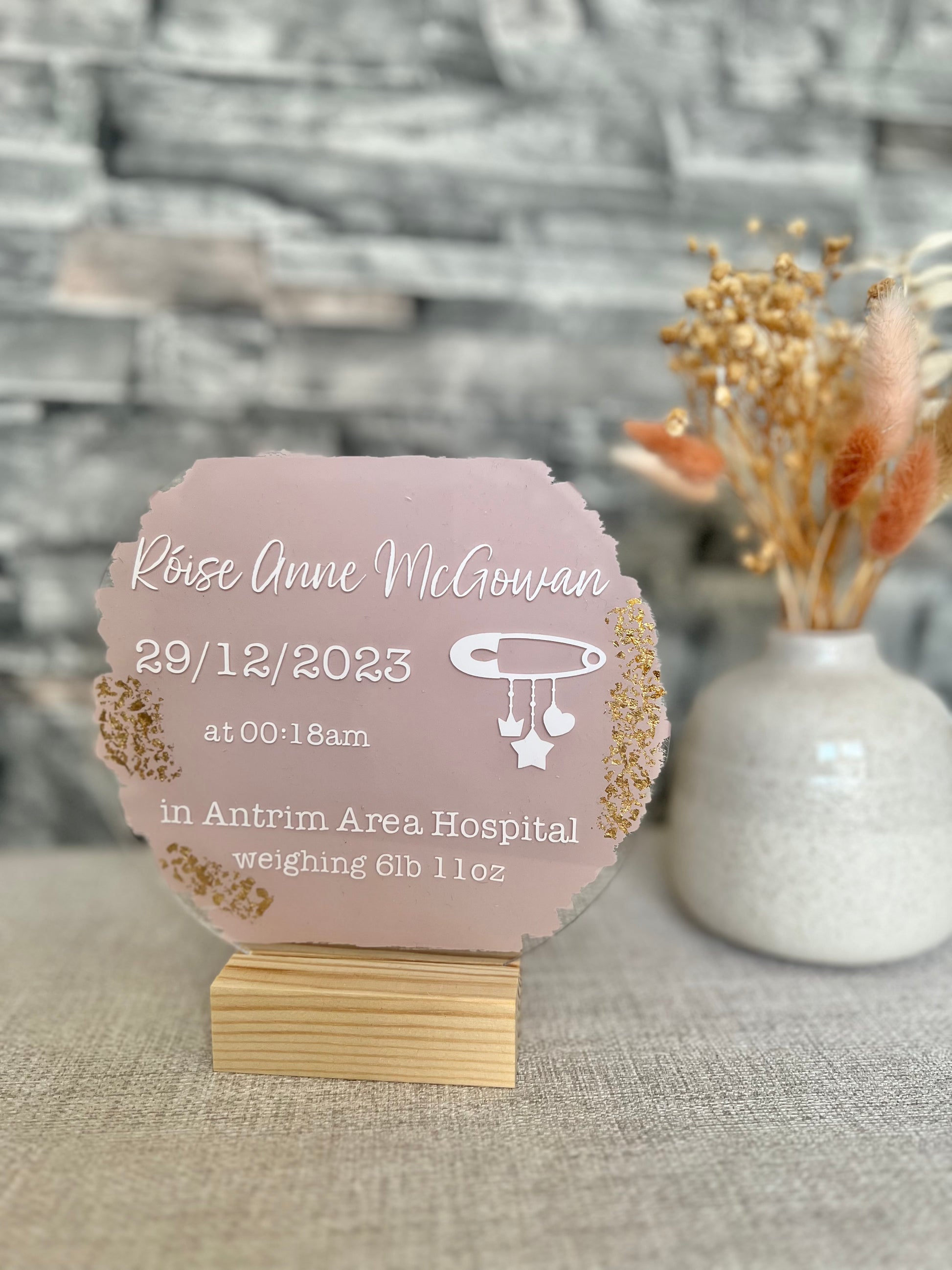 Let us create the perfect keepsake gift for baby with one of our 6” acrylic plaques. You can include baby’s name, date of birth, birth weight, and a Bible verse or message at the bottom of the plaque.