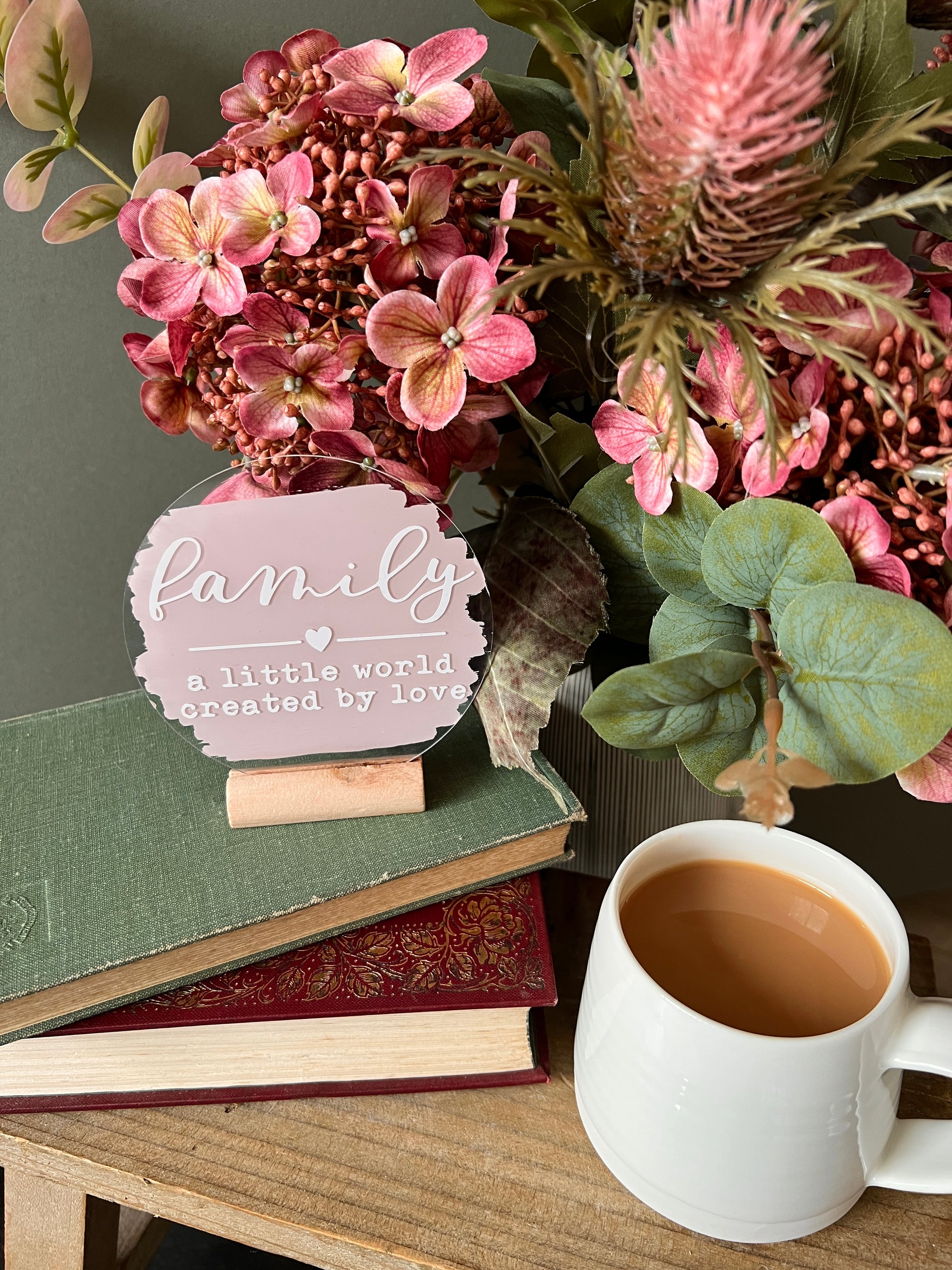 A beautiful 4" acrylic plaque on wooden stand - to have sitting on a windowsill, side table, bookshelf or mantle.