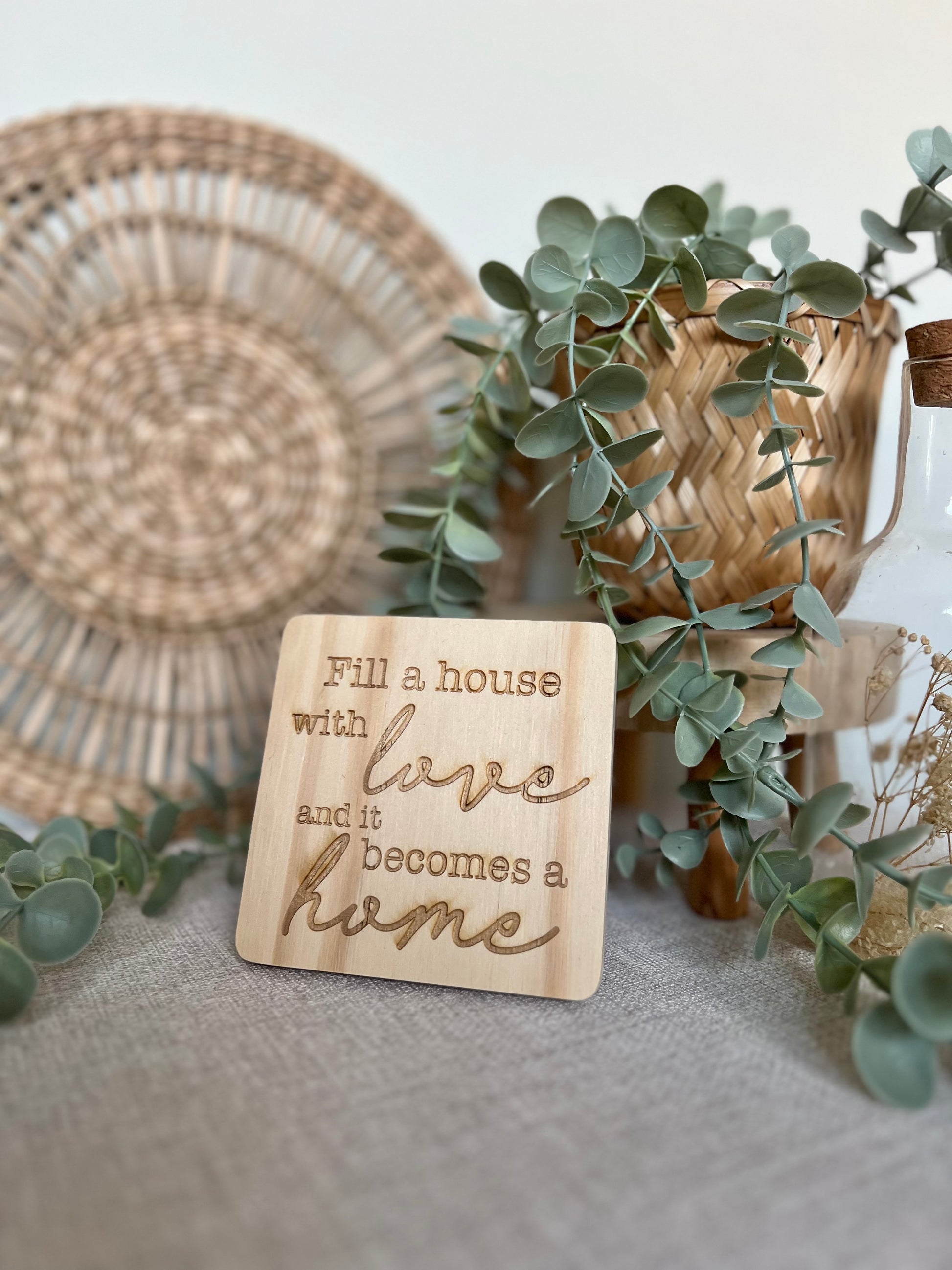 Fill a house with love wooden engraved coaster