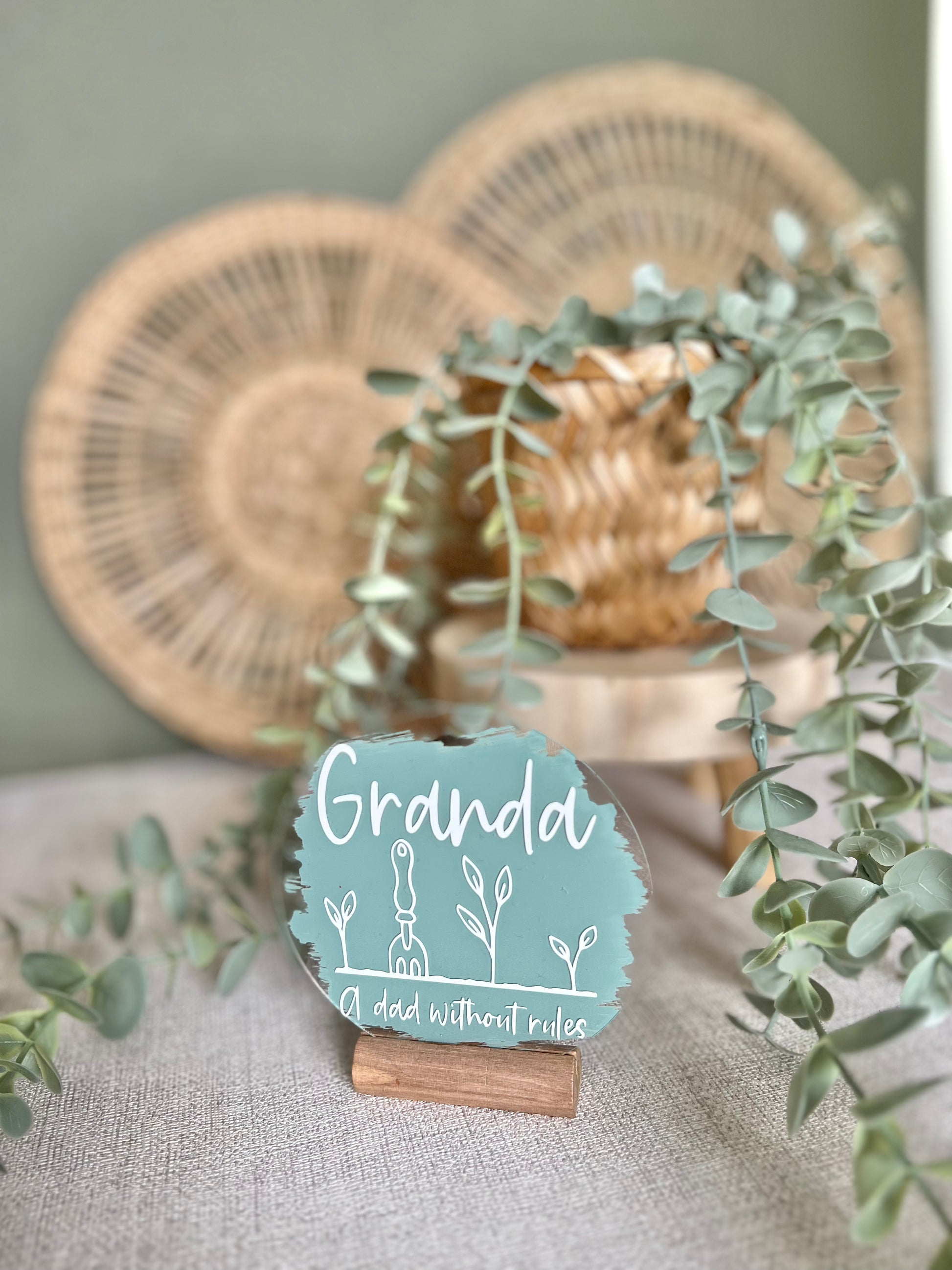 A beautiful 4" acrylic plaque on wooden stand - to have sitting on a windowsill, side table, bookshelf or office desk. A great gift option for Father’s Day or granda’s birthday.