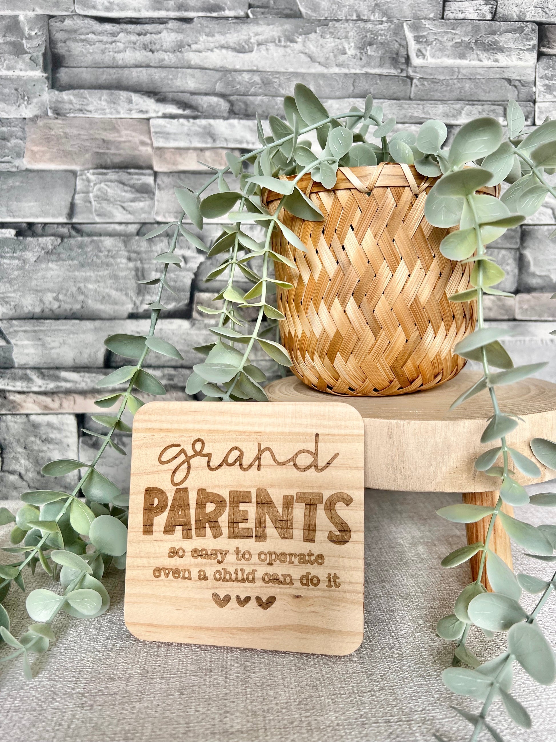 Grandparents easy to operate engraved wooden coaster