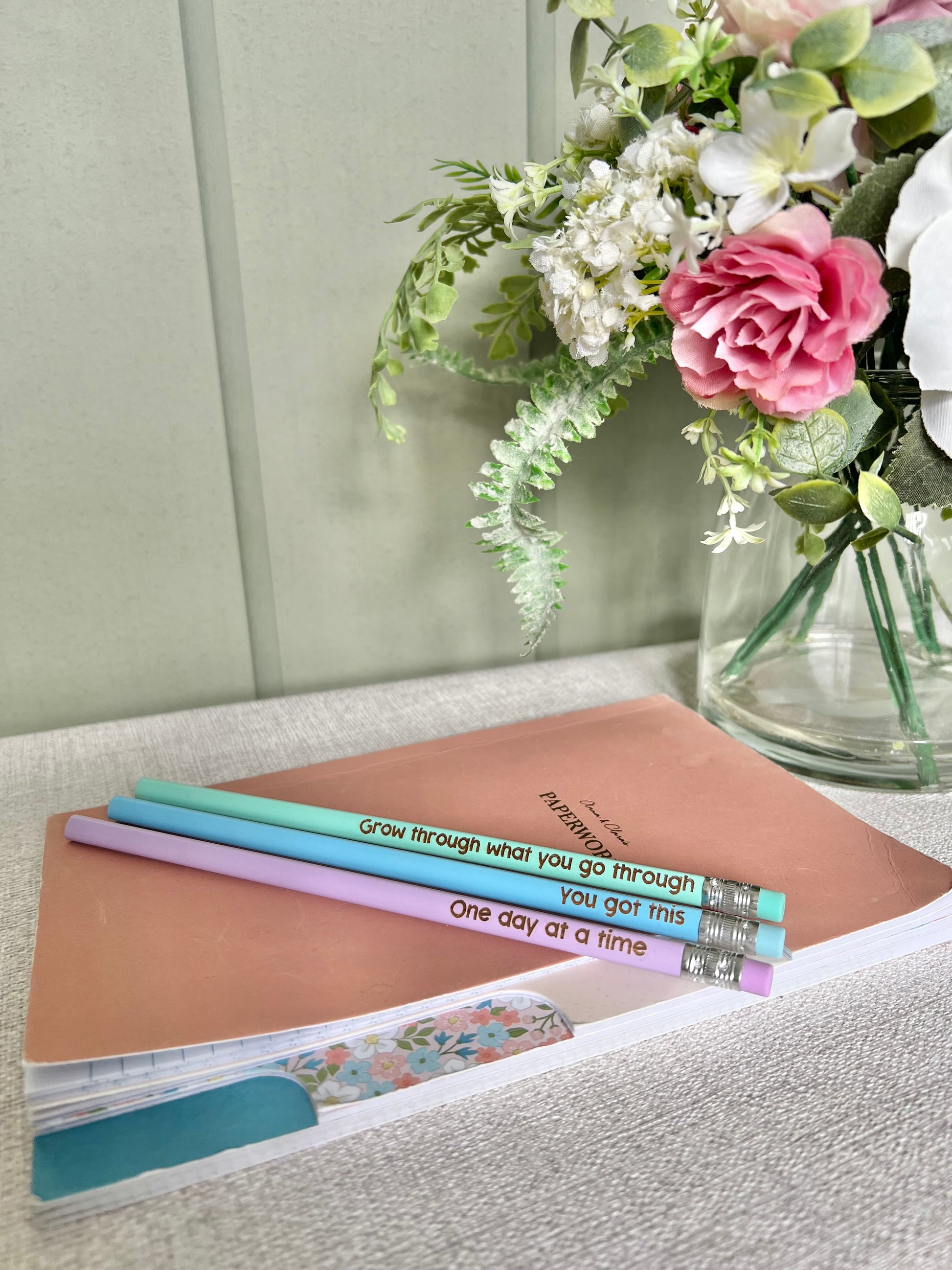 Encourage a friend with these pencil packs with engraved words of encouragement and affirmation.