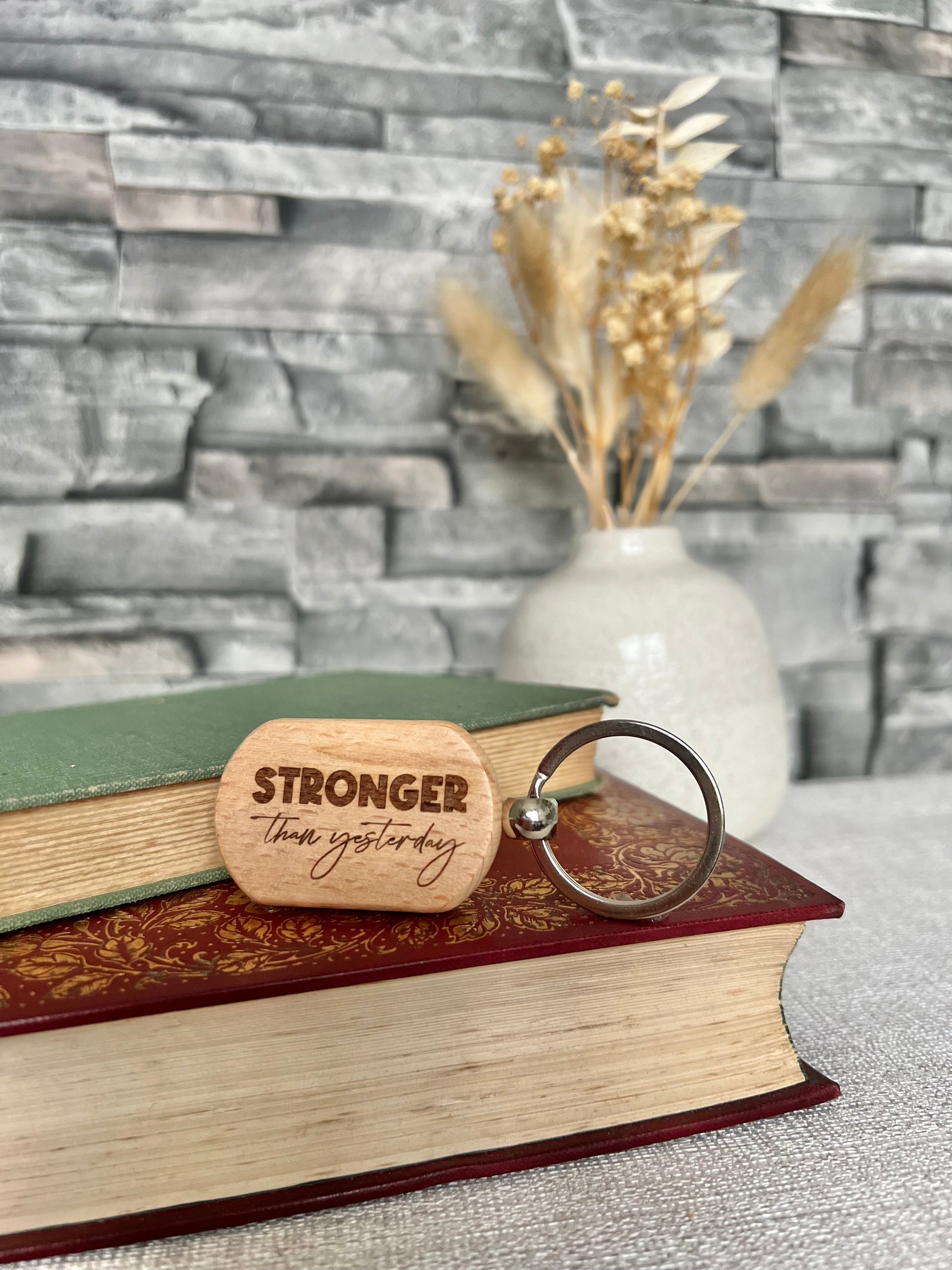 Stronger than yesterday engraved keyring