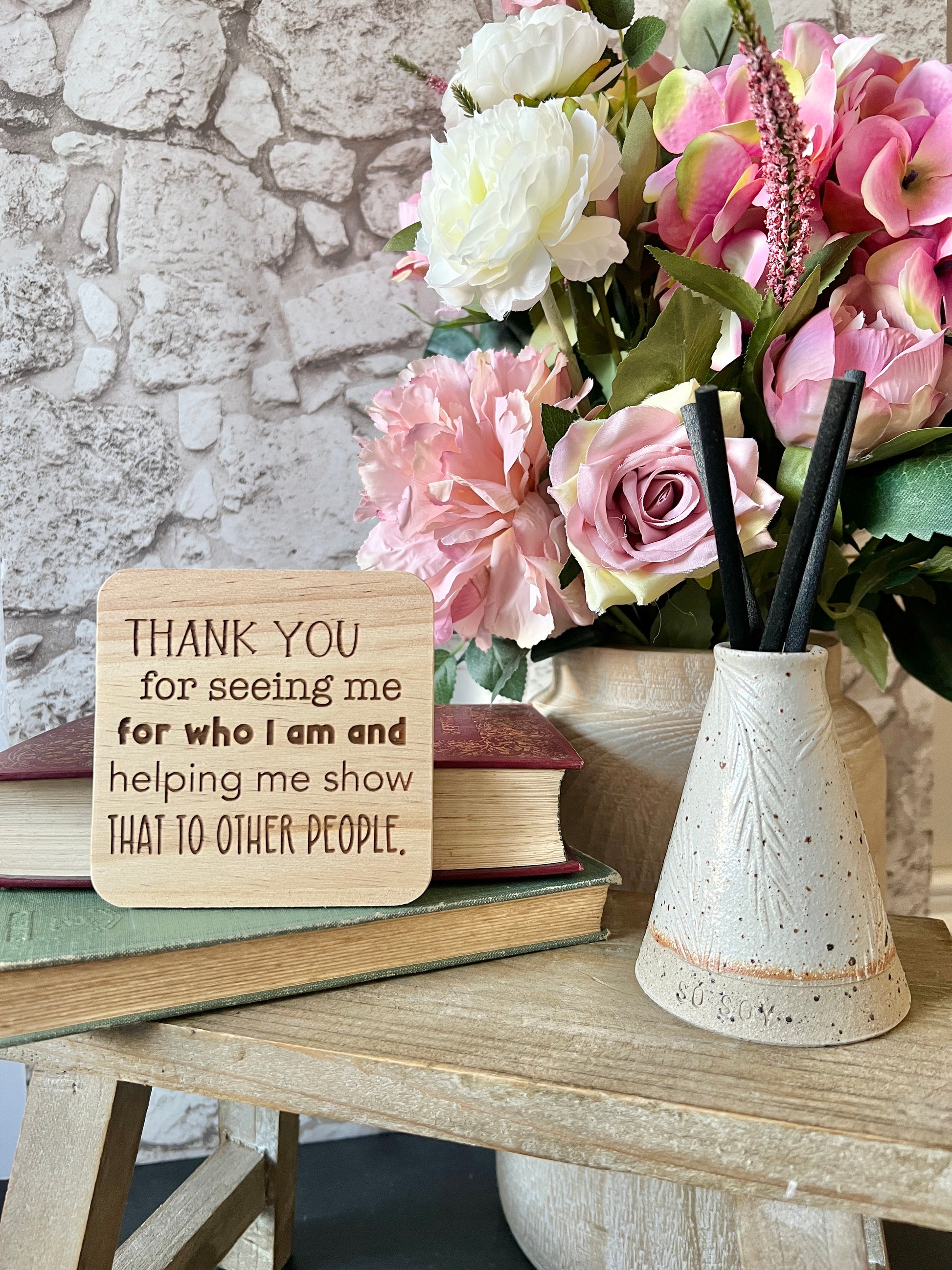 Thank you for seeing me engraved wooden coaster